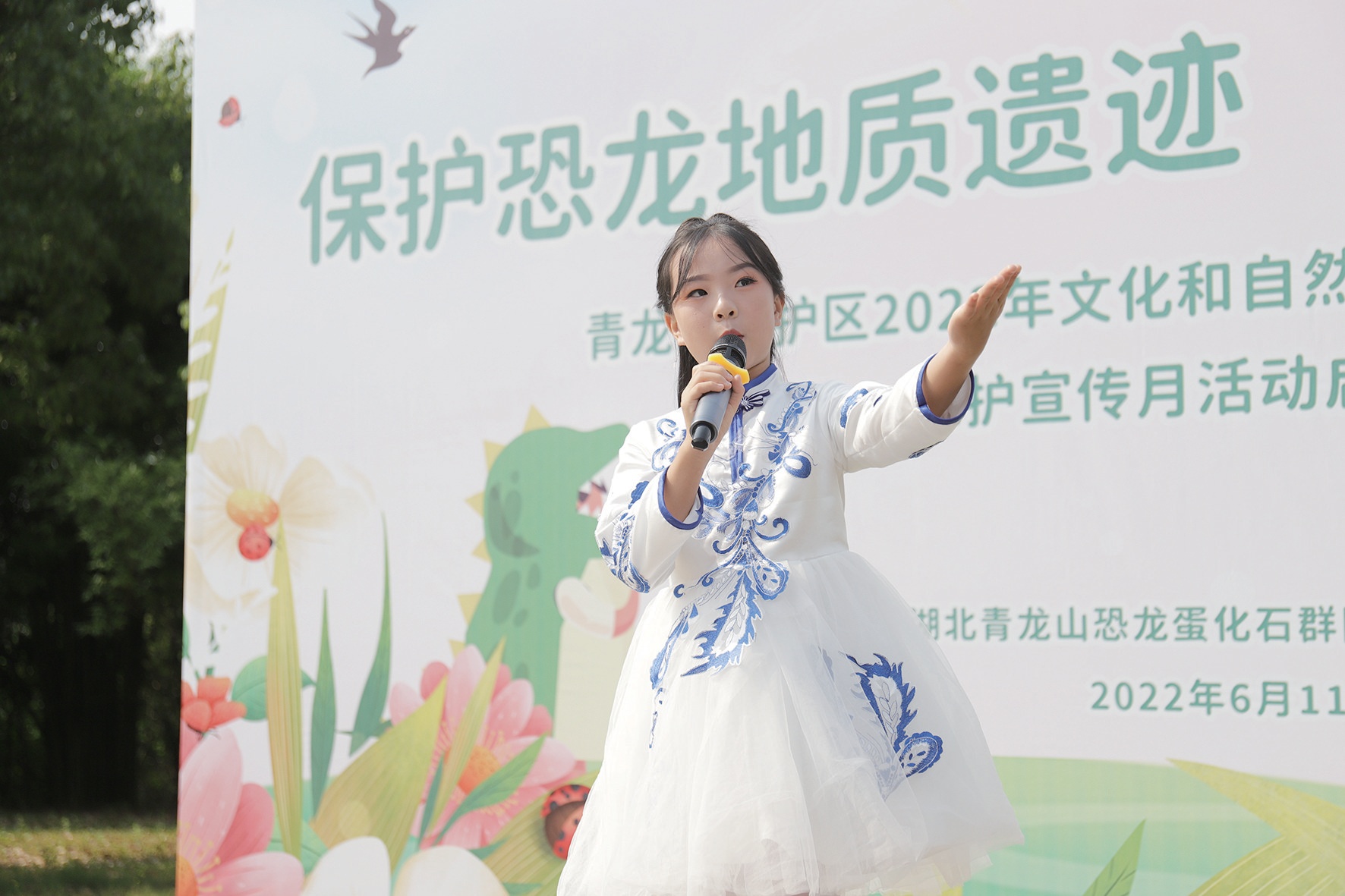 “讓我們行動(dòng)起來(lái),爭(zhēng)做恐龍地質(zhì)遺跡保護(hù)的小衛(wèi)士,像保護(hù)眼晴、愛(ài)惜生命一樣保護(hù)好恐龍地質(zhì)遺跡,不偷挖、盜挖恐龍蛋,不交易、買(mǎi)賣(mài)恐龍蛋……”小記者代表李華博、李坤陽(yáng)現(xiàn)場(chǎng)發(fā)出保護(hù)文化和自然遺產(chǎn)倡議,希望現(xiàn)場(chǎng)的小記者們行動(dòng)起來(lái),爭(zhēng)做恐龍地質(zhì)遺跡保護(hù)的小衛(wèi)士、恐龍地質(zhì)遺跡保護(hù)的宣傳員和現(xiàn)代科學(xué)知識(shí)的傳播者,傳播珍愛(ài)地球,保護(hù)環(huán)境的理念,自覺(jué)踐行“綠水青山就是金山銀山”的發(fā)展理念,共建人與自然和譜共生的美麗家園。