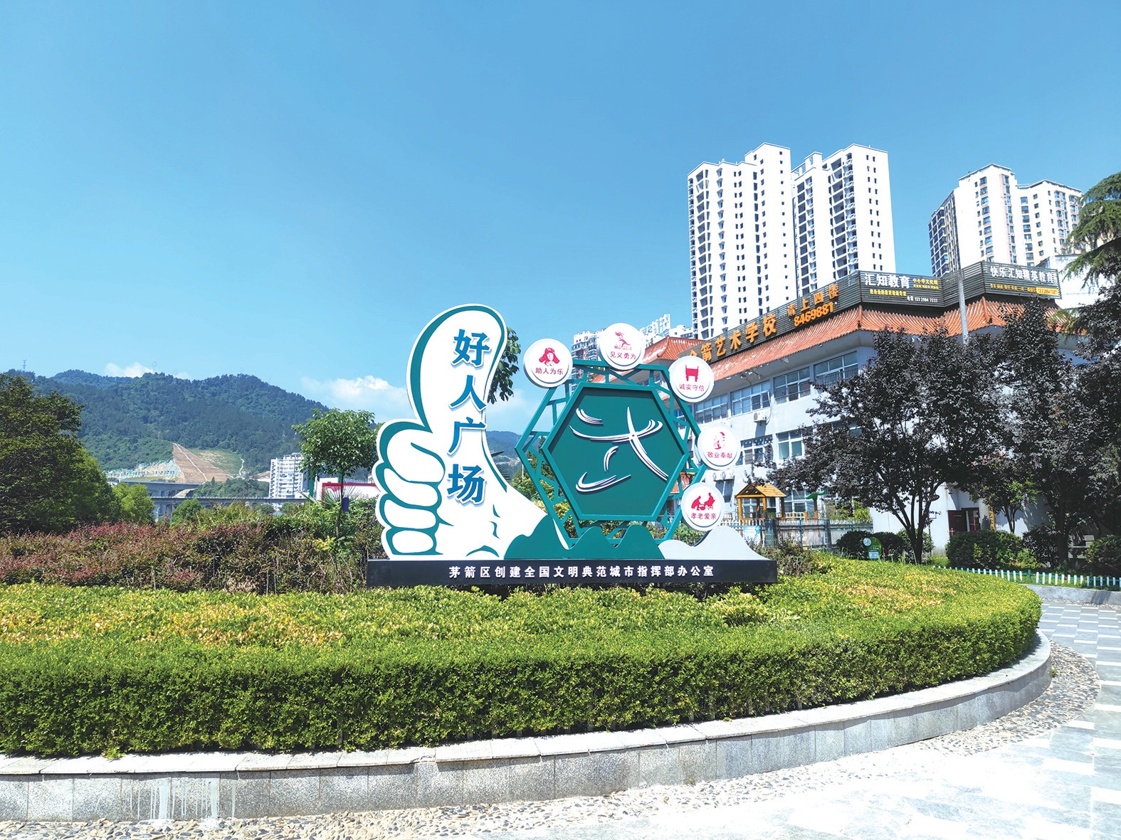 7月8日上午,茅箭區(qū)首個(gè)“好人廣場(chǎng)”在賽武當(dāng)廣場(chǎng)“金桂園”正式開(kāi)放,廣場(chǎng)上整齊排列著十余塊好人事跡宣傳牌。茅箭區(qū)城市文明創(chuàng)建中心結(jié)合茅箭區(qū)文明典型宣傳,把“好人廣場(chǎng)”作為展示茅箭精神文明建設(shè)成果的窗口,讓市民在休閑散步中,領(lǐng)略好人風(fēng)范、感受道德力量。