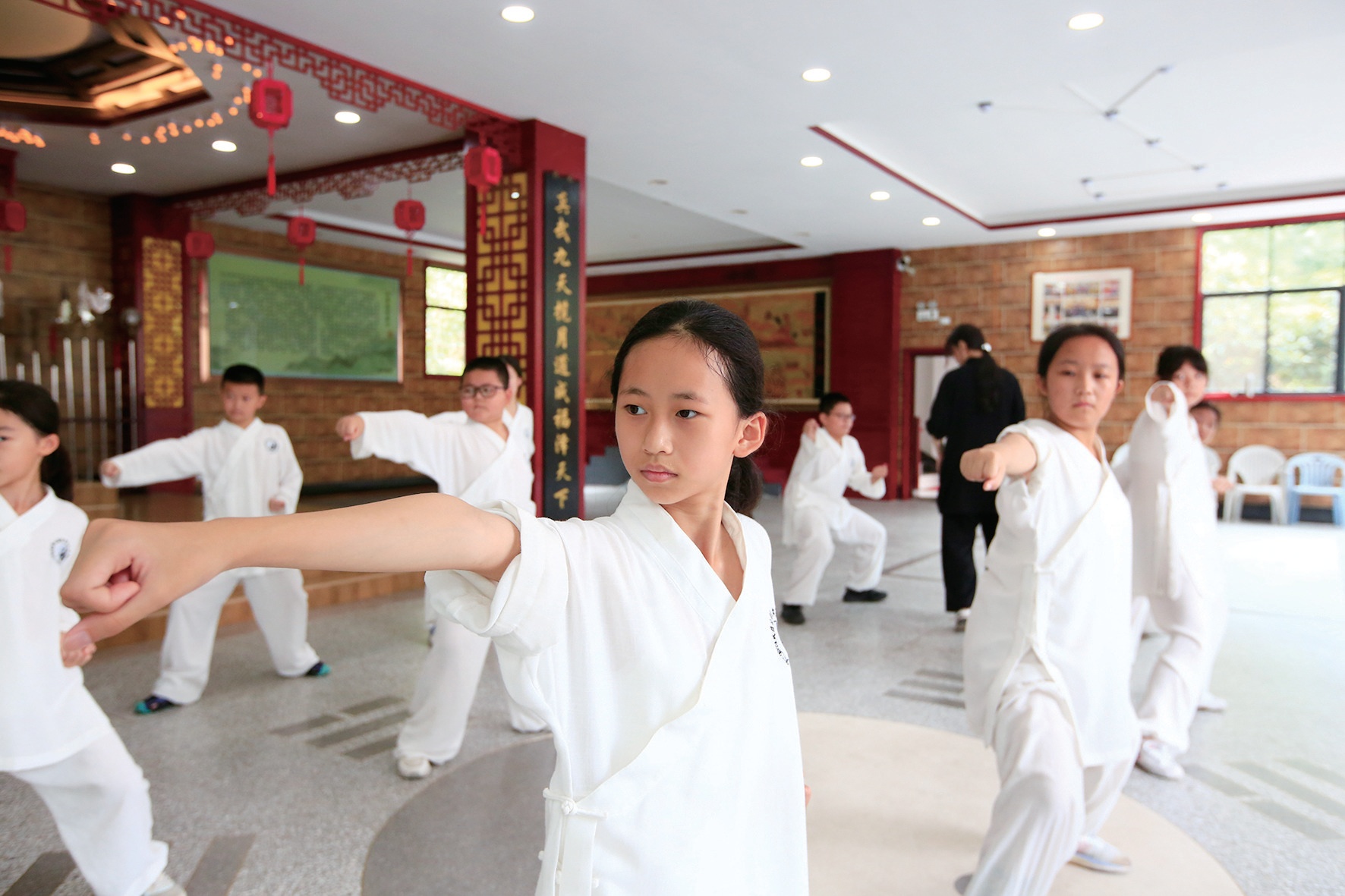 進(jìn)入暑假,武當(dāng)山各家武館開設(shè)的“功夫夏令營”,迎來全國各地的孩子們習(xí)練武當(dāng)武術(shù)。他們多半在這里住半個(gè)月到一個(gè)月,除了習(xí)練武當(dāng)武術(shù),還學(xué)習(xí)書法、道家禮儀等,度過一個(gè)“不平凡的夏天”。