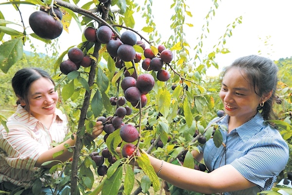 7月23日,一批游客來到竹山縣文峰鄉(xiāng)塘灣村楊應(yīng)義家鮮果試驗(yàn)園里采摘原生態(tài)“冰糖李”。近年來,文峰鄉(xiāng)堅持引導(dǎo)和扶持堵河沿岸農(nóng)民發(fā)展生態(tài)農(nóng)業(yè),按照“山山有茶、村村有果”的目標(biāo),大力發(fā)展萬畝生態(tài)茶園、千畝“脆紅李”園和500畝葡萄園等,將文峰鄉(xiāng)打造成農(nóng)旅融合的鄉(xiāng)村旅游與生態(tài)休閑產(chǎn)業(yè)帶。