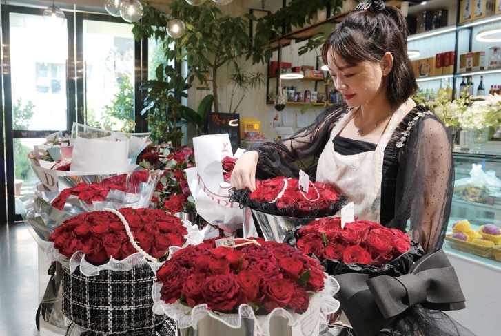 據這些花店老板介紹,訂花群體普遍為二三十歲的年輕人,送花給戀人,增加儀式感。同時,也有一些女性到花店自行購買鮮花擺放在家里,增添浪漫節(jié)日氛圍。
