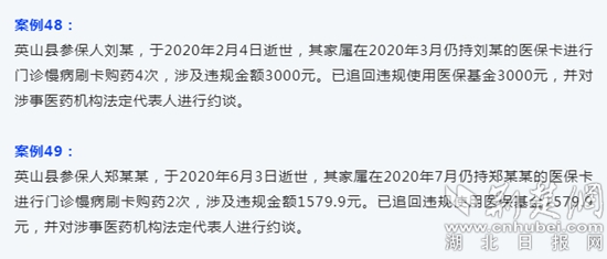 荊楚網(wǎng)(湖北日報網(wǎng))訊(記者 金康)9月1日,英山縣醫(yī)療保障局曝光“三假”案列,49名逝世者家屬仍持死者醫(yī)??ㄟM行門診慢病刷卡購藥。目前,該局已全部追回違規(guī)使用醫(yī)?;穑ι媸箩t(yī)藥機構(gòu)法定代表人進行約談。