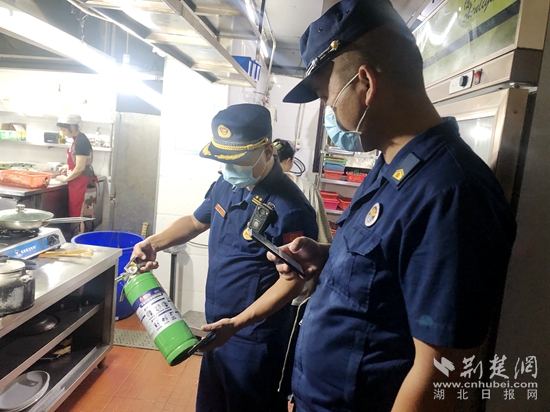 期間,檢查組一行詳細(xì)對(duì)使用燃?xì)獾母黝惒惋媹?chǎng)所是否取得燃?xì)饨?jīng)營(yíng)許可證,廚房與其他部位防火分隔,是否使用燃?xì)鈭?bào)警器,燃?xì)庠O(shè)備、管線設(shè)置和維護(hù)等情況進(jìn)行檢查,并重點(diǎn)就燃?xì)廛浌苁欠翊嬖诟g、老化現(xiàn)象、廚房電氣線路敷設(shè)、油煙管道是否定期清理等情況進(jìn)行查看。同時(shí),還向餐飲工作人員講解燃?xì)獾氖褂靡?guī)范、檢漏方法、泄漏的應(yīng)急措施及逃生與自救。