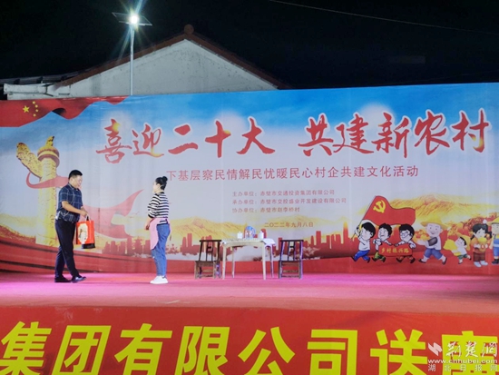 荊楚網(wǎng)(湖北日報網(wǎng))訊(通訊員李傳麗 楊婷 楊芳)中秋節(jié)即將來臨,為豐富廣大黨員干部群眾的精神文化生活,營造節(jié)日喜慶氛圍。9月8日晚,赤壁交投集團在該市趙李橋鎮(zhèn)趙李橋村舉辦“喜迎二十大 共建新農(nóng)村”送廉文化下鄉(xiāng)主題晚會,以文化浸潤凝聚黨心民心,用文化展現(xiàn)從嚴治黨,弘揚清風正氣。