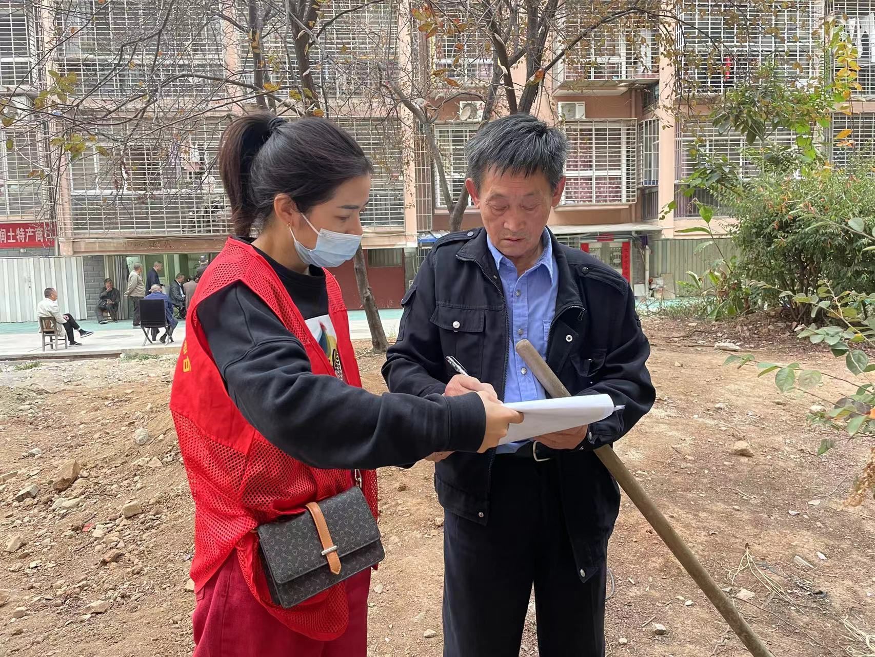 在社區(qū)的指導下,小區(qū)業(yè)委會主任邵忠新與小區(qū)老黨員、網(wǎng)格員等一起,挨家挨戶征求居民對停車位改造的意見和建議。