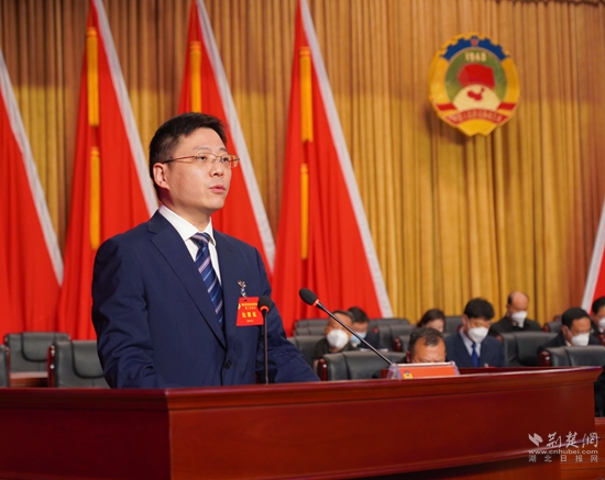 華容區(qū)政協(xié)副主席萬(wàn)向東作《中國(guó)人民政治協(xié)商會(huì)議華容區(qū)第九屆委員會(huì)常務(wù)委員會(huì)