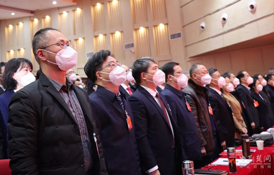 與會(huì)人員齊唱國(guó)歌。阮瓊 攝