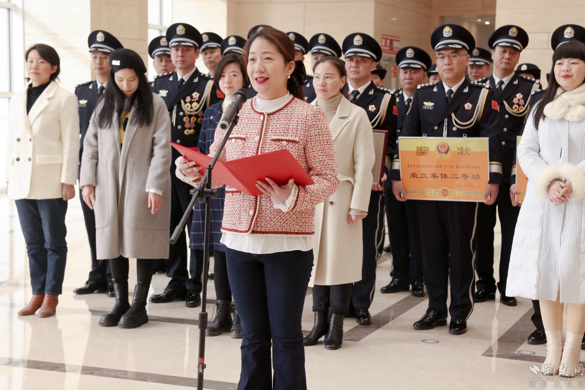 黃石市副市長、公安局局長黃志勇為先進(jìn)集體代表頒獎。通訊員 供圖