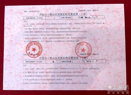 荊楚網(wǎng)(湖北日?qǐng)?bào)網(wǎng))訊(記者呂鑒蕾 通訊員董浩)“選擇房票安置,讓我們得到了更多的實(shí)惠?!?月13日,家住黃石開發(fā)區(qū)·鐵山區(qū)汪仁鎮(zhèn)馬鞍山村的汪先生領(lǐng)到該區(qū)住房保障局發(fā)出的房屋征收安置房票,票面總金額36萬(wàn)元,他立即帶著家人在湖山新城選購(gòu)了一套商品房,一家人急切地盼望著搬進(jìn)新居。