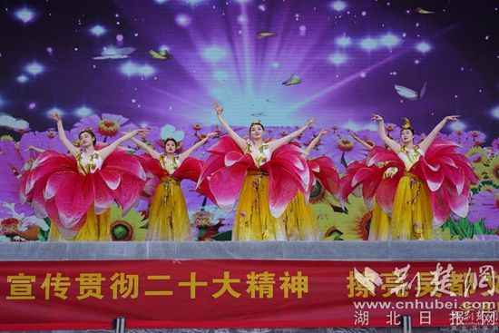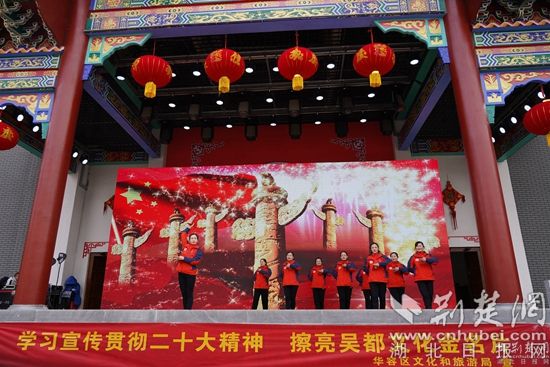 新春廟會(huì)將黨的二十大宣講、文藝演出與民俗表演相結(jié)合,開場(chǎng)舞蹈《荊楚歡歌》、湖北大鼓《二十大精神放光芒》、詩(shī)朗誦《航程》、反串《長(zhǎng)袖舞》、男聲獨(dú)唱《我和我的祖國(guó)》等文藝節(jié)目和傳統(tǒng)的舞獅、雜技、魔術(shù)等老百姓喜聞樂見的表演在廟會(huì)現(xiàn)場(chǎng)輪番上演。