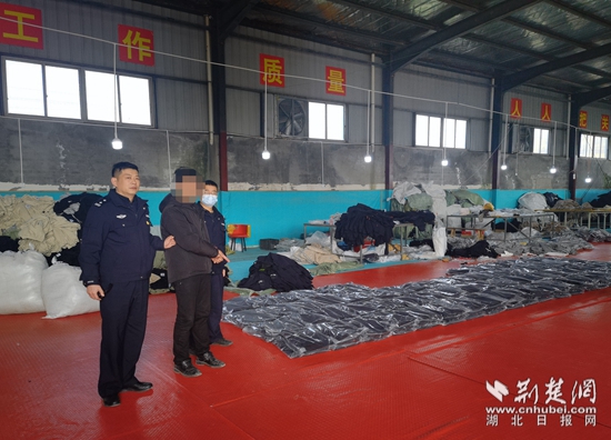 1月11日中午時分,在局領(lǐng)導(dǎo)的統(tǒng)一指揮下,食藥大隊聯(lián)合武穴市市場監(jiān)督管理局和打假公司等組成近30余人的查獲組,分三組分頭同步進行,一舉查獲、查封三個生產(chǎn)加工窩點,控制董某某等涉案人員10余名,現(xiàn)場查扣高仿運動品牌服裝4萬余件,涉案價值百余萬元。