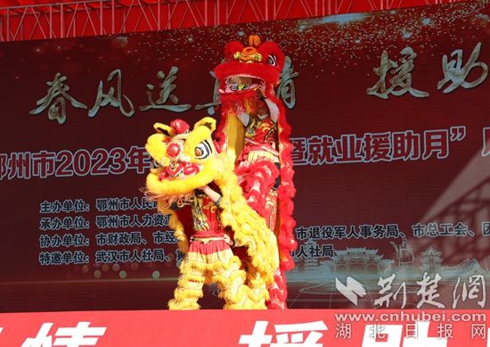 與此同時(shí),暖場(chǎng)表演鼓樂(lè)齊鳴、熱火朝天,歌聲聲動(dòng)梁塵,舞獅活靈活現(xiàn)、精彩絕倫,引得觀者連連叫好。現(xiàn)場(chǎng)一片歡快熱鬧的場(chǎng)景,好似寓意著每一位求職者滿載而歸。