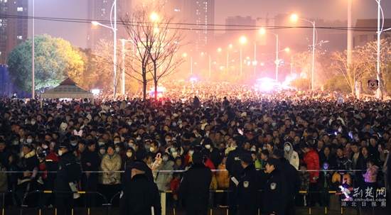 當(dāng)晚,在武山湖南門戶廣場、環(huán)湖大道擠滿了前來觀看的市民游客。大約7時許,武穴萬人空巷,城東的幾條主干道上,車流滾滾,游人如織。
