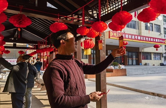 古樓街道考棚社區(qū)青蓮廣場上猜燈謎、賞花燈、看展覽、品湯圓等趣味環(huán)節(jié)輪番上演。清廉亭中,一盞盞極具中國傳統(tǒng)喜慶元素的花燈高高懸起。工作人員早早將正丹紙精心剪裁成條狀,提前寫上了以清廉文化為主要內(nèi)容,集知識性、思想性、趣味性于一體的燈謎,供居民競猜。