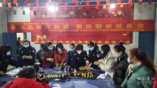 此次活動(dòng)中,東風(fēng)所民輔警還與社區(qū)干部、居民代表一起做游戲,包湯圓、吃湯圓。大冶公安此次的花式鬧元宵既傳承了中華民族傳統(tǒng)節(jié)日的文化習(xí)俗,又讓群眾在歡樂祥和的節(jié)日氛圍中學(xué)習(xí)了反詐知識,增長了對電信網(wǎng)絡(luò)詐騙危害的認(rèn)識,營造了群眾參與禁毒反詐斗爭的濃厚氛圍。