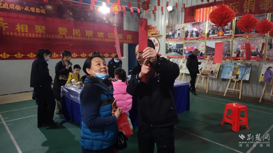 隨著教導(dǎo)員陳才和宣布猜燈謎活動(dòng)開始,一場“最強(qiáng)大腦”猜燈謎爭奪賽在這里上演。自信滿滿的市民群眾們紛紛將謎面摘下,并將自己猜出的謎底與副所長姜萍核對,答對者立即獲得小禮品一份。在猜燈謎活動(dòng)現(xiàn)場,穿插著的妙趣橫生的警民互動(dòng),將現(xiàn)場氣氛推向高潮,歡聲笑語不斷。