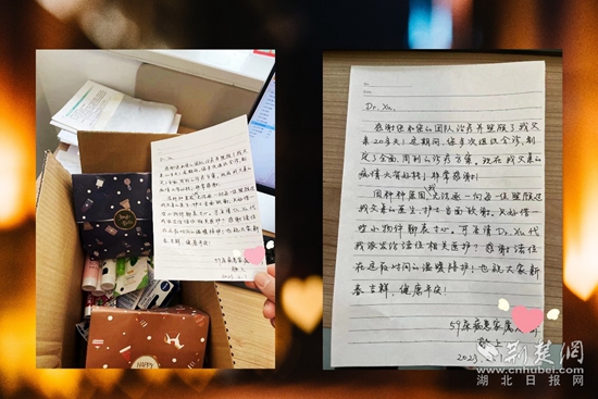 荊楚網(wǎng)(湖北日?qǐng)?bào)網(wǎng))訊(通訊員 范琳琳 何幸運(yùn))“感謝諸位在這段時(shí)間的溫暖陪伴!”日前,黃岡市中心醫(yī)院泌尿外科收到一份誠(chéng)意滿滿的禮物。紙盒里不僅裝滿糖果、潤(rùn)唇膏、護(hù)手霜等暖心小禮物,還有一封珍貴的手寫感謝信。