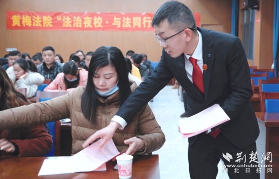 荊楚網(wǎng)(湖北日報網(wǎng))訊(通訊員 吳英 梁南)2月24日,黃梅法院城關(guān)法庭“法治夜?!づc法同行”大講堂走進黃梅鎮(zhèn)五里墩社區(qū),與村民一起探索交流提升基層治理水平、共同締造美好幸福生活的新路徑、新方法,進一步踐行新時代“楓橋經(jīng)驗”,提高群眾的法治觀念和法律意識,豐富群眾學(xué)法用法新渠道。