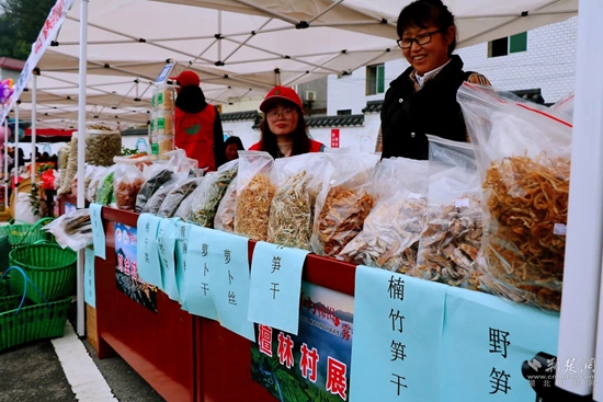 霧云山的特色,遠不止梯田、茶園等自然景觀,村民們自制的干菜、“九大碗”、手工制品等成為活動現(xiàn)場的搶手貨。