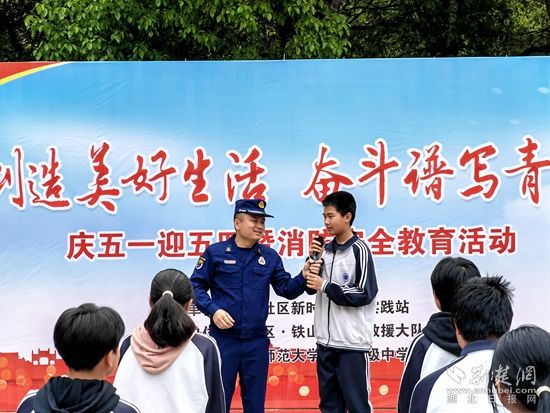 在消防小知識有獎競答環(huán)節(jié),學(xué)生們踴躍回答問題,紛紛展示學(xué)到的消防知識,現(xiàn)場氣氛一片火熱,為了增強(qiáng)互動效果,宣傳員利用消防宣傳車播放了生動有趣的消防安全知識短片,并講解了滅火器、逃生面罩等消防器材及產(chǎn)品的使用方法和注意事項(xiàng),吸引了學(xué)生們觀看和學(xué)習(xí)。