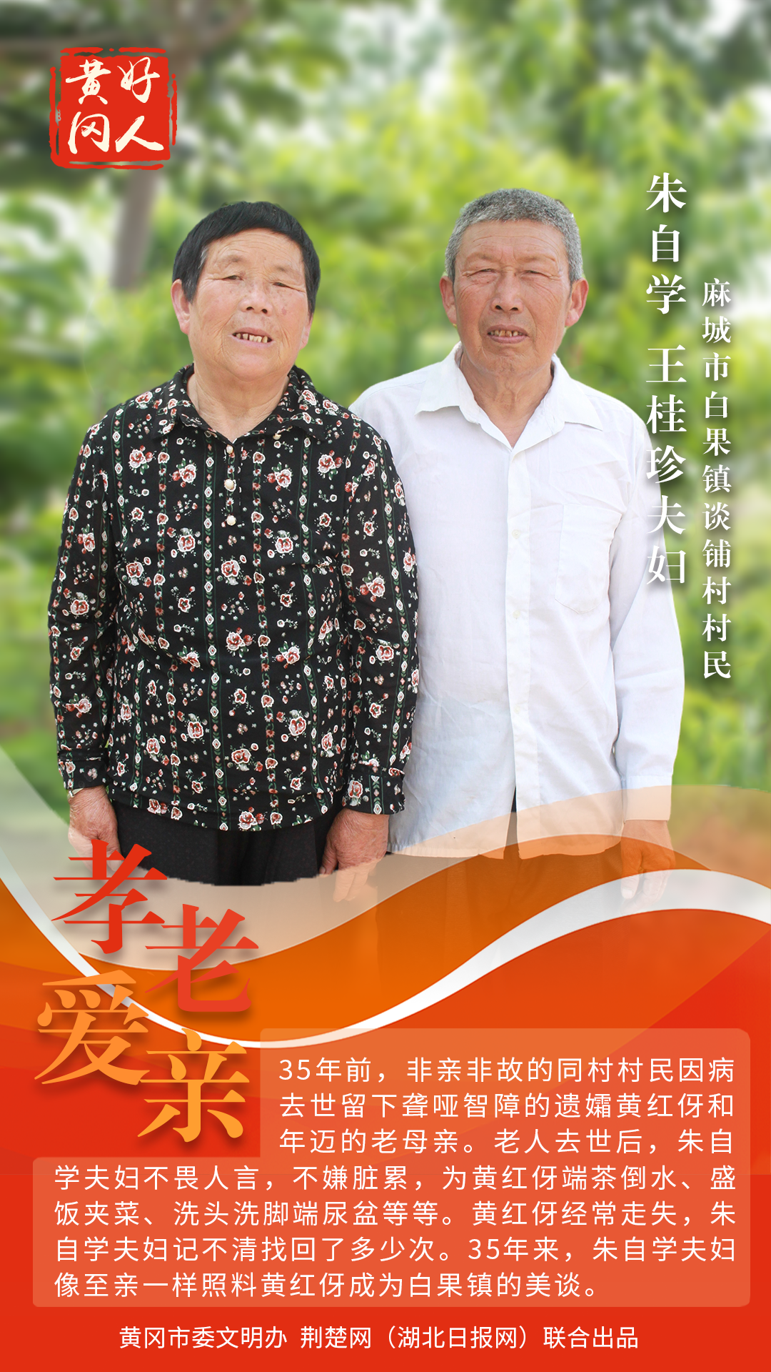 本期“黃岡好人”共有5組好人入選。他們中有“助人為樂、樂善好施”的陳光明;有“敢打硬仗、熱衷公益”的楊志謀;有“危難時刻顯身手”的杜友福;有“海歸博士變身田間耕夫”的潘新星;有“35年堅守,照顧殘障村民如至親”的朱自學、王桂珍夫婦。