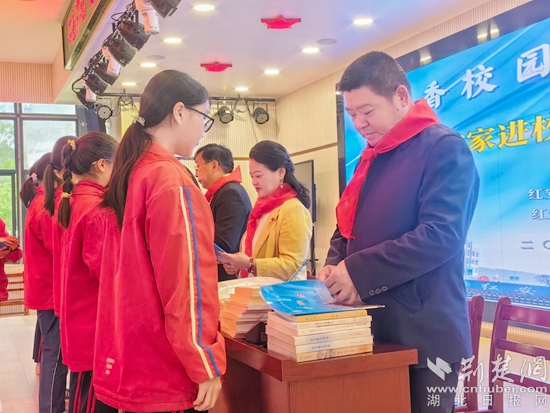 活動伊始,少先隊員為作家佩戴紅領(lǐng)巾,贈送《子曰》詩刊。紅安縣作協(xié)主席倪先勝為永河小學(xué)的12名學(xué)生頒發(fā)“小作家”證書,同時贈送《紅安文學(xué)》及其它作品。
