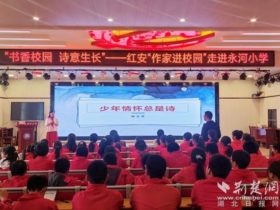 荊楚網(wǎng)(湖北日報網(wǎng))訊(通訊員毛紅平 董改 劉志勇)5月24日,紅安縣文聯(lián)、紅安縣作家協(xié)會組織作家走進(jìn)永河小學(xué),開展一場主題為“名作家小作者、大手牽小手、作家進(jìn)校園”的文學(xué)志愿服務(wù)活動。旨在培育文學(xué)人才,推進(jìn)全民閱讀,弘揚詩歌文化,在校園播下文學(xué)的種子。