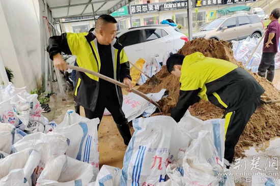 5月26日至27日7時23分,麻城市氣象臺多次發(fā)布暴雨橙色預警,宋埠鎮(zhèn)及上游普降大暴雨,降水峰值達100毫米以上,麻城市稅務局宋埠稅務分局駐點村——李勝村正是上游“破堰河”與“干沙河”的匯集處所在地,河內水位迅速上漲,防汛形勢十分嚴峻。汛情就是命令,了解到具體情況后,宋埠稅務分局迅速行動,奔跑在抗洪搶險的第一線。