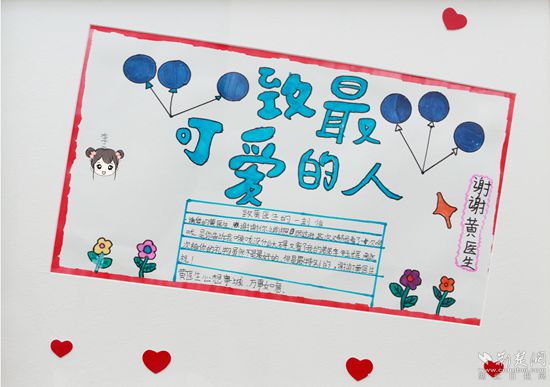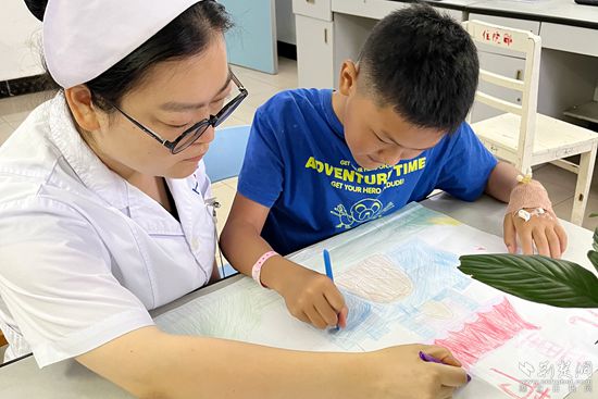 “這幅畫送給黃醫(yī)生?!毙∶饕?yàn)橹夤苎捉邮芰艘恢艿淖≡褐委?,他在兒科病房?nèi)用顏料、紙張和畫筆,畫了自己和兒科主任黃佳林主任的合照,準(zhǔn)備在出院時(shí)送給醫(yī)生。