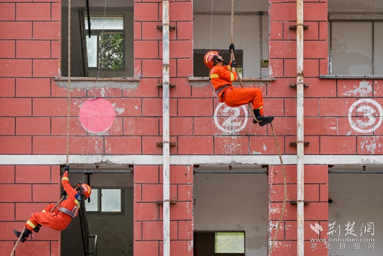 此次比武競(jìng)賽活動(dòng)設(shè)置有5000米跑、4×400米接力、4×100米游泳接力、繩索攀爬、負(fù)重登10樓、攀登15米金屬拉梯操和業(yè)務(wù)理論考試七個(gè)項(xiàng)目。