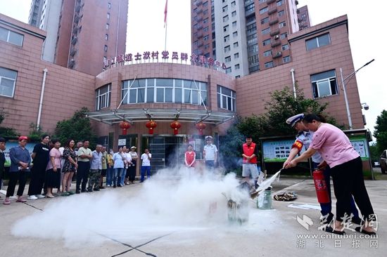 理論學(xué)習(xí)結(jié)束后,消防宣傳員組織村民進(jìn)行了使用滅火器撲救初起火災(zāi)實操訓(xùn)練,進(jìn)一步加深村民對消防知識的認(rèn)知,提高他們的滅火技能和實踐能力。