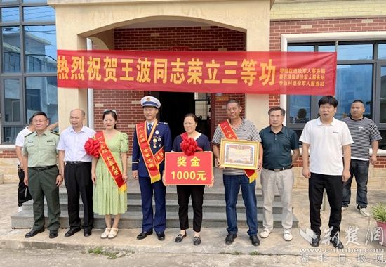 荊楚網(wǎng)(湖北日?qǐng)?bào)網(wǎng))訊(通訊員 丁元中)愛國奉獻(xiàn)在消防,立功喜訊傳家鄉(xiāng)。6月14日上午,鄂州碧石渡鎮(zhèn)李邊村1組熱鬧非凡,鄂城區(qū)退役軍人事務(wù)局、碧石渡鎮(zhèn)武裝部一行人給榮立三等功的現(xiàn)役軍人王波軍屬送上喜報(bào)和慰問金。