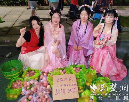 荊楚網(wǎng)(湖北日?qǐng)?bào)網(wǎng))訊(記者 左乙辰 通訊員 姚昭、羅成)“又大又甜狗血桃,好吃好看有營(yíng)養(yǎng)。新鮮的保安狗血桃,25元一袋,請(qǐng)大家過(guò)來(lái)支持一下我們本地的農(nóng)戶……”6月16日晚上八點(diǎn),在大冶市恒達(dá)歡樂(lè)大世界摩天輪旁,一群身穿漢服的小姐姐蹲在路面一邊在直播間售賣桃子,一邊吆喝吸引路人過(guò)來(lái)買。