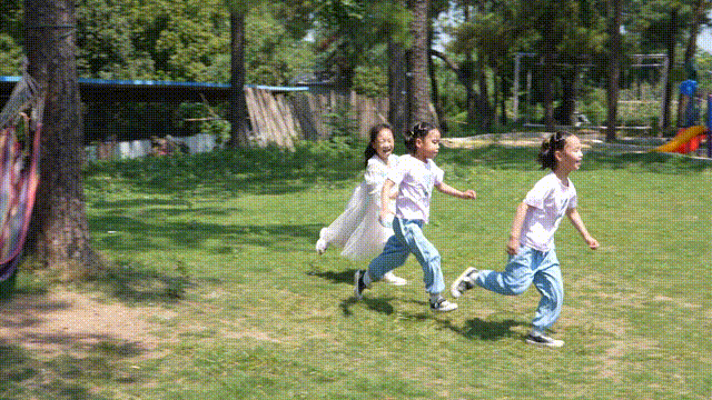 孩子們在草地上奔跑