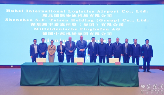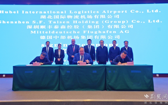 荊楚網(wǎng)(湖北日報網(wǎng))訊(記者 金康 通訊員 夏榮港)11月20日,湖北國際物流機(jī)場有限公司、深圳順豐泰森控股(集團(tuán))有限公司、德國中部機(jī)場集團(tuán)有限公司,在鄂州市臨空經(jīng)濟(jì)區(qū)三方簽訂戰(zhàn)略合作備忘錄。這標(biāo)志著鄂州花湖機(jī)場和德國萊比錫/哈勒機(jī)場牽手合作,共同推動三方航空貨運(yùn)發(fā)展。