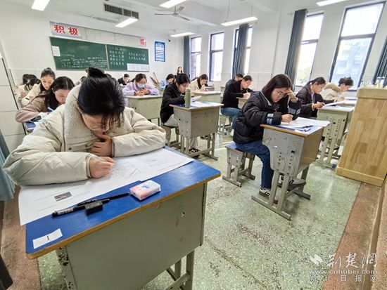當(dāng)天早上8時(shí)許,記者來(lái)到黃石城區(qū)考點(diǎn)——黃石十六中。只見黃石各直屬高中的書記、校長(zhǎng)在校門口為前來(lái)“趕考”的教師加油鼓勁。記者注意到,參加考試的教師當(dāng)中,還包括了部分學(xué)校的副校長(zhǎng)、主任等管理人員。