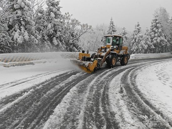 在各重點(diǎn)路段,工作人員迅速設(shè)置提示牌,并及時(shí)砍伐被積雪壓倒的楠竹等樹(shù)木。此外,還通過(guò)人工鏟雪、機(jī)械撒工業(yè)鹽等措施,爭(zhēng)取在最短的時(shí)間內(nèi)搶通受冰雪影響的道路。