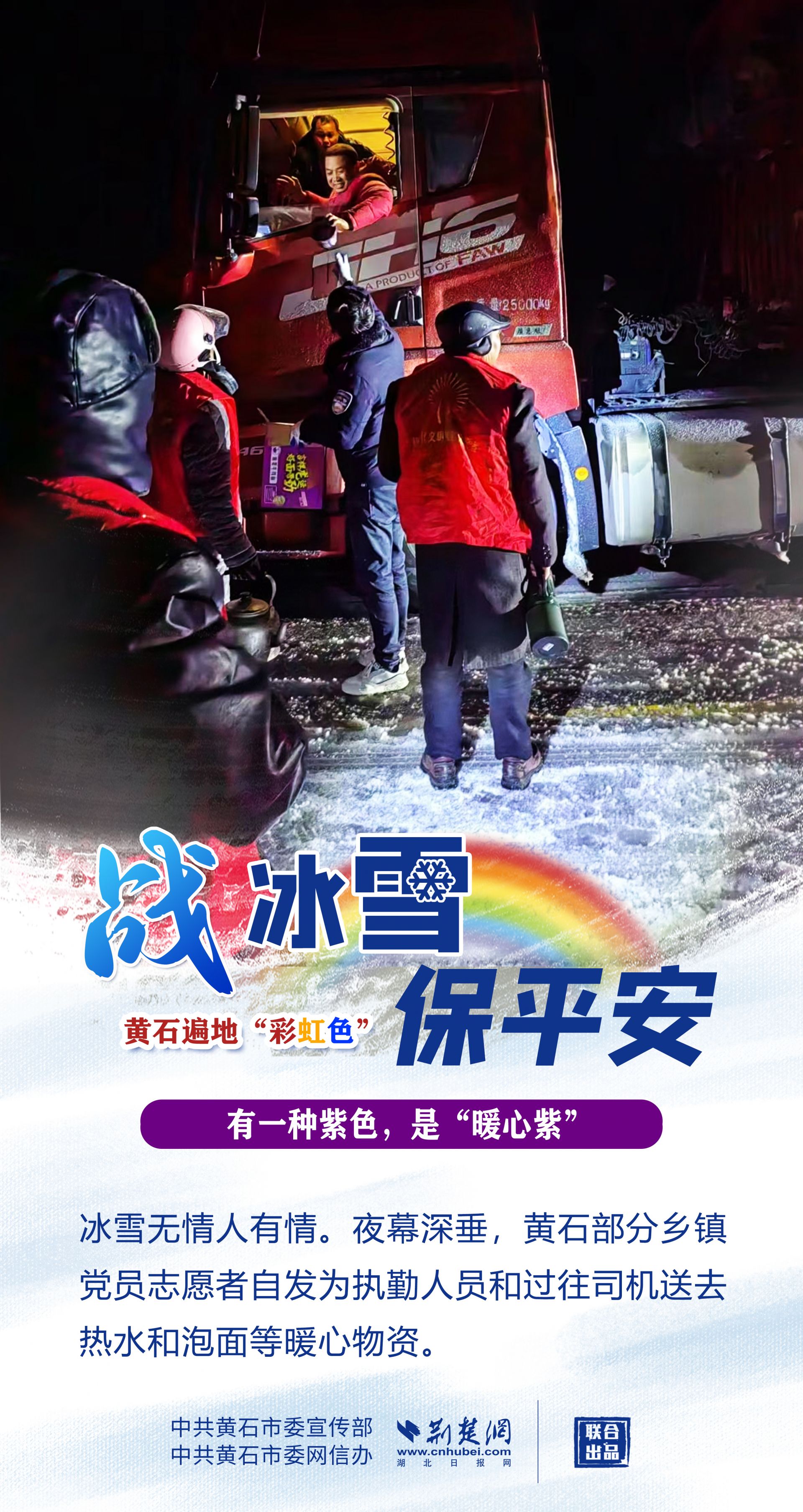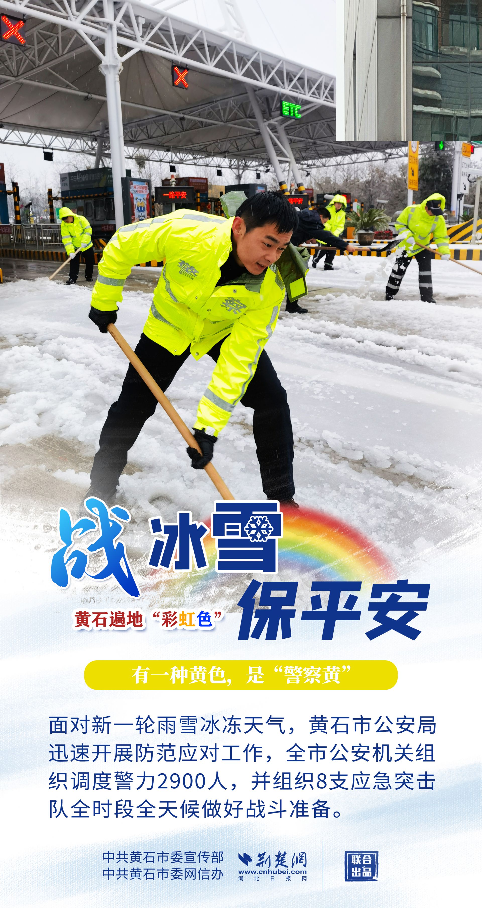 志愿紅、應(yīng)急橙、警察黃、郵政綠……黃石各地、各部門以雪為令,迎風(fēng)戰(zhàn)雪,市縣兩級2.4萬下沉黨員干部迅速到位,各項工作快速有序鋪開,全力保障人民群眾生命財產(chǎn)安全,最大限度減輕冰雪帶來的影響。