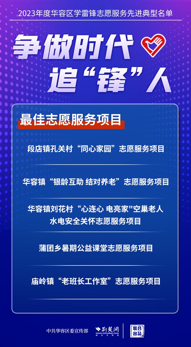 荊楚網(wǎng)(湖北日報網(wǎng))訊(記者王焱堯 通訊員劉佳源)最美志愿者、最佳志愿服務(wù)組織、最佳志愿服務(wù)項目、最美志愿家庭……3月5日,武漢新城展示中心,鄂州市華容區(qū)公布2023年度學(xué)雷鋒志愿服務(wù)先進典型名單。