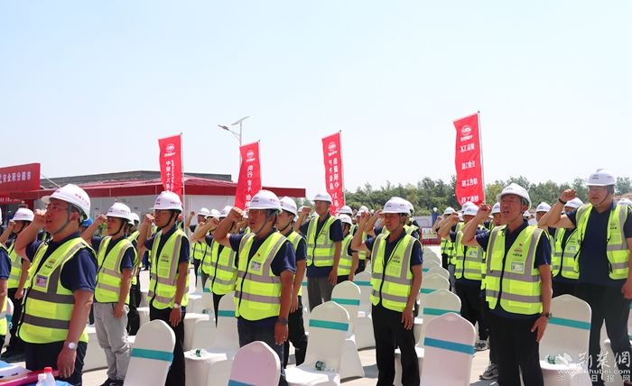“我是一名光榮的建設(shè)者,面對(duì)鮮紅旗幟,莊嚴(yán)宣誓: 快速制勝,安全至上,只爭朝夕創(chuàng)高產(chǎn);精細(xì)管理 創(chuàng)譽(yù)創(chuàng)效,銳意進(jìn)取提質(zhì)效;勇當(dāng)標(biāo)桿,建造精品,實(shí)干興企爭一流。我鄭重承諾……堅(jiān)決做到……”建設(shè)者們的眼中閃爍著堅(jiān)定的光芒,現(xiàn)場(chǎng)的氣氛被這一番誓言推向了高潮。