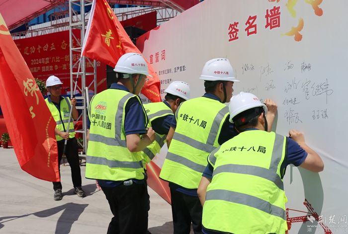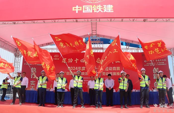 會(huì)上,為參建職工代表頒授爭創(chuàng)“黨員先鋒崗”、“工人先鋒號(hào)”、“青年突擊隊(duì)”、安全生產(chǎn)示范隊(duì)、技術(shù)創(chuàng)新攻關(guān)隊(duì)、后勤保障服務(wù)驛站旗幟。