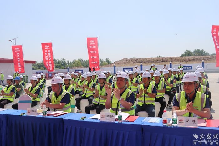 荊楚網(wǎng)(湖北日?qǐng)?bào)網(wǎng))訊(記者陶輝 通訊員劉聰 陳玨 秦楣)紅旗招展,誓言鏗鏘。5月10日,在位于麻城市鼓樓街道秦家崗的合武高鐵湖北段HWZQ-1標(biāo)4號(hào)拌和站,一場(chǎng)鼓舞人心的勞動(dòng)競賽推進(jìn)會(huì)火熱舉行。