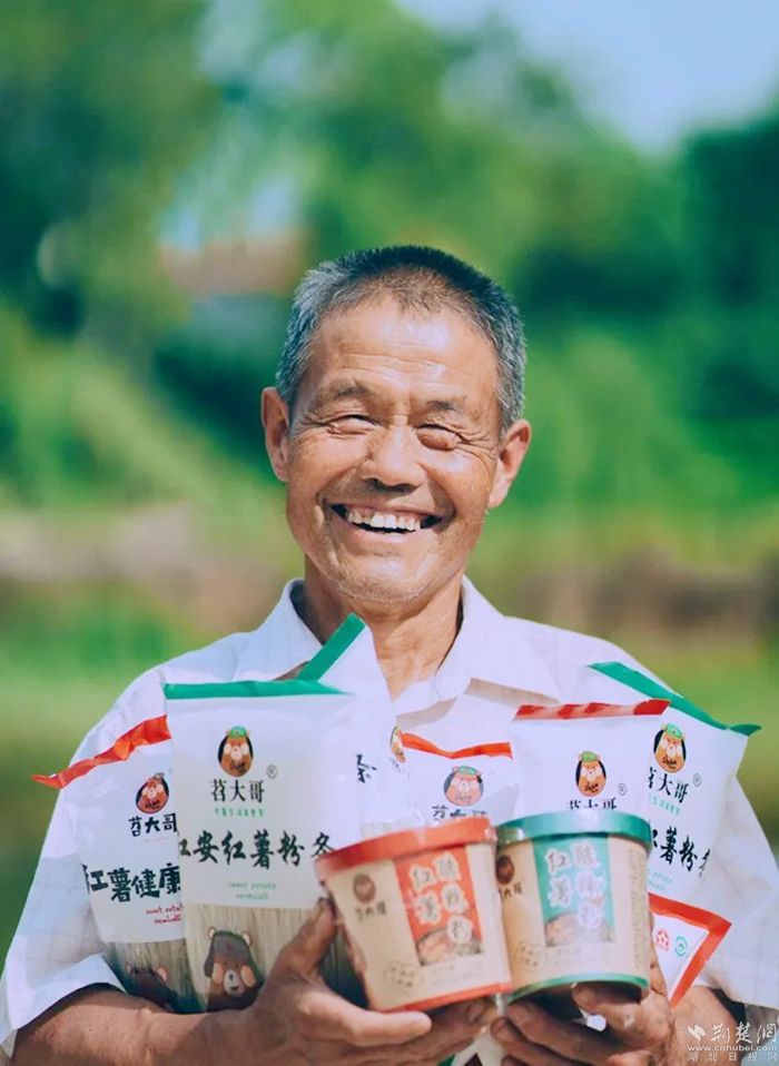 2018年3月,他注冊了商標(biāo)“苕大哥”,采用傳統(tǒng)技藝,結(jié)合先進(jìn)的自動化生產(chǎn)設(shè)備,憑借純正紅安苕的品質(zhì)與極佳的口感,生產(chǎn)的“苕大哥”牌紅薯淀粉、紅薯粉條受到市場廣泛好評。