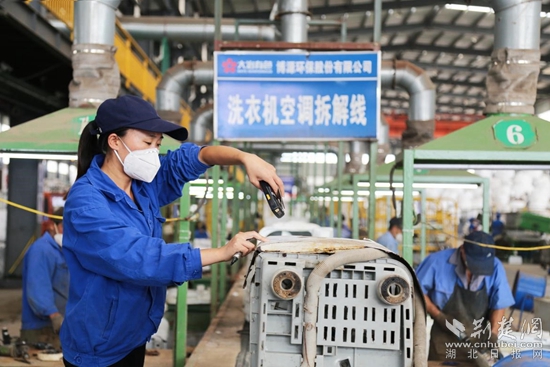 劉國平介紹,今年1至7月份,包括電視、冰箱、洗衣機(jī)、空調(diào)和電腦在內(nèi)的“四機(jī)一腦”共拆解57.85萬套,廢舊汽車回收拆解509臺(tái),小家電拆解6283噸。去年,企業(yè)拆解舊家電超過100萬臺(tái),產(chǎn)出金屬銅3000噸,“相當(dāng)于中色大冶的第五座礦山”。