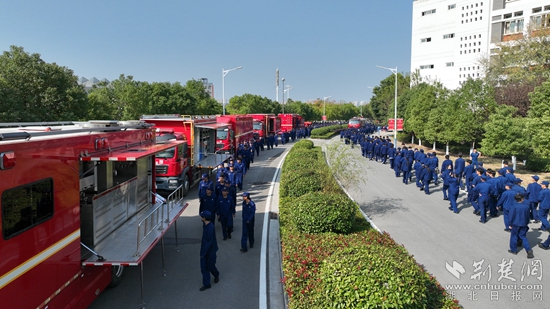 黃岡市委、市政府相關(guān)負(fù)責(zé)同志出席儀式,市消防安全專委會成員單位代表、重點單位負(fù)責(zé)人、高校師生代表、消防志愿者代表、消防救援指戰(zhàn)員代表等1000余人參加活動。