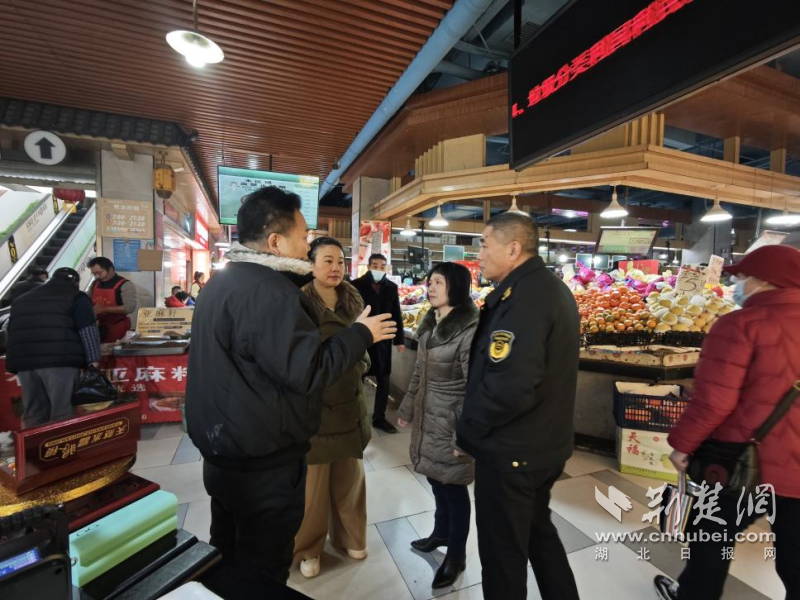 嚴(yán)密開展農(nóng)貿(mào)市場(chǎng)“優(yōu)秩序保安全迎新年”專項(xiàng)督查行動(dòng),分管領(lǐng)導(dǎo)帶隊(duì)檢查了東湖景園市場(chǎng),重點(diǎn)檢查了市場(chǎng)內(nèi)外環(huán)境衛(wèi)生、長(zhǎng)江漢江魚禁售、計(jì)量電子秤、保供穩(wěn)價(jià)、消防安全等情況。