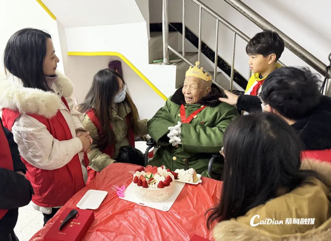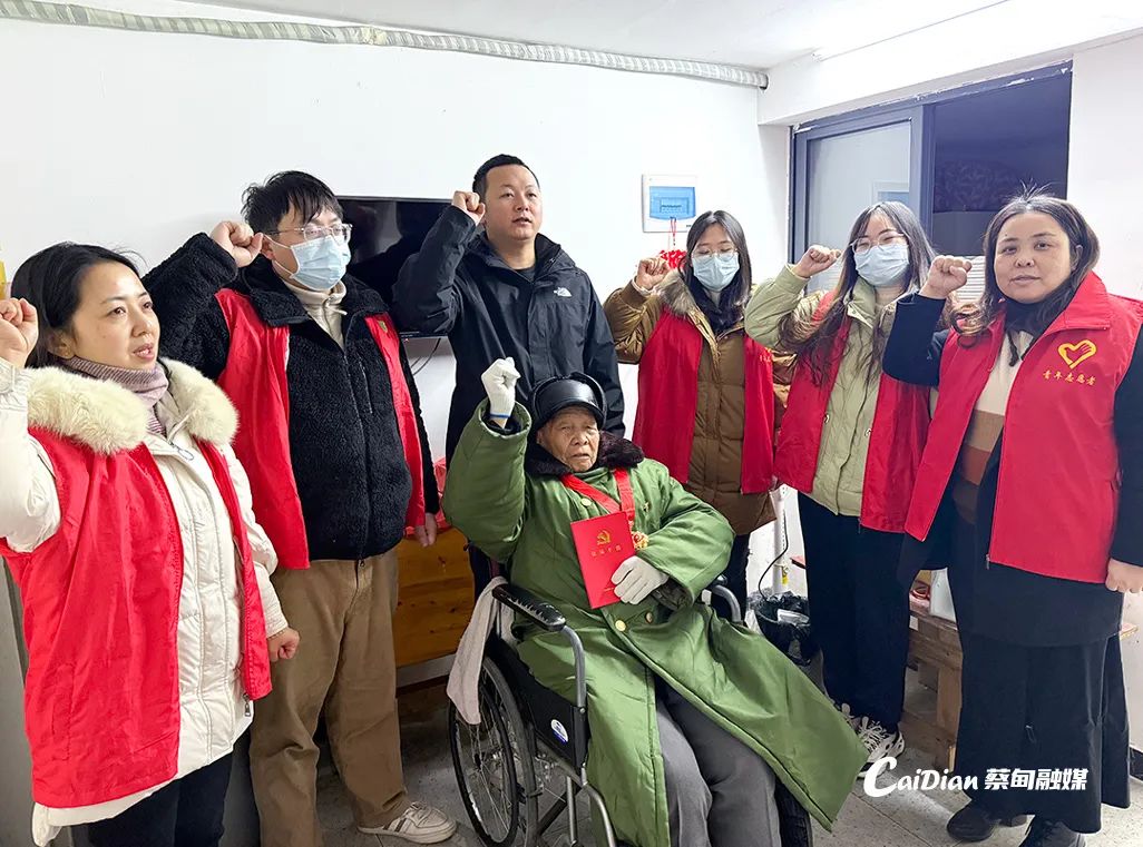 1月17日上午,龔家?guī)X社區(qū)黨員滿懷敬意,帶著精心準備的生日蛋糕和米油等生活物資,來到張業(yè)榮老人家中,為他補辦100歲生日。張業(yè)榮佩戴著“光榮在黨50年”紀念章,深情高唱《沒有共產(chǎn)黨就沒有新中國》,與大家一起重溫入黨誓詞,講述往昔革命故事。