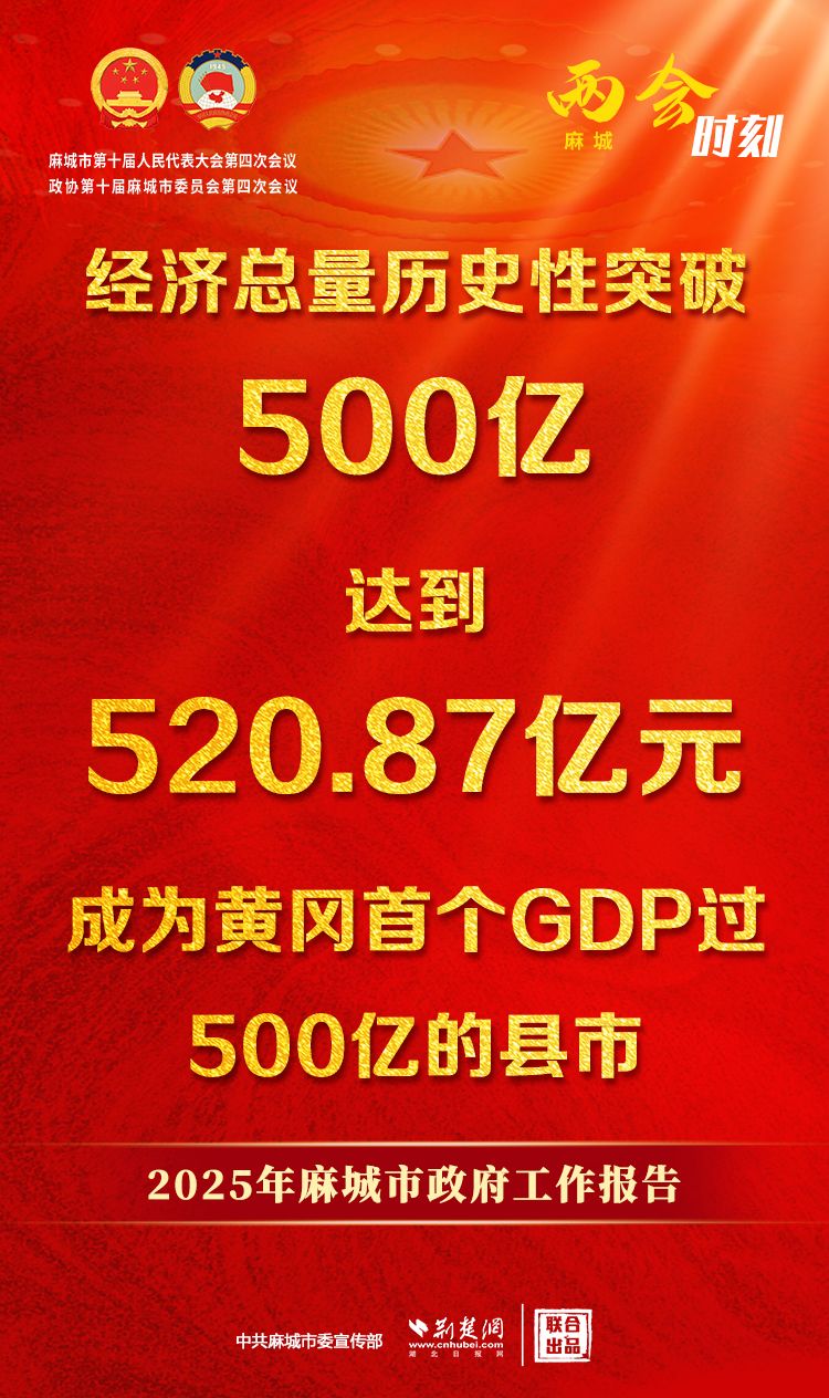 2024年,麻城市經(jīng)濟(jì)總量歷史性突破500億,達(dá)到520.87億元,增長6.7%,總量和增速均居黃岡首位,成為黃岡首個GDP過500億的縣市。