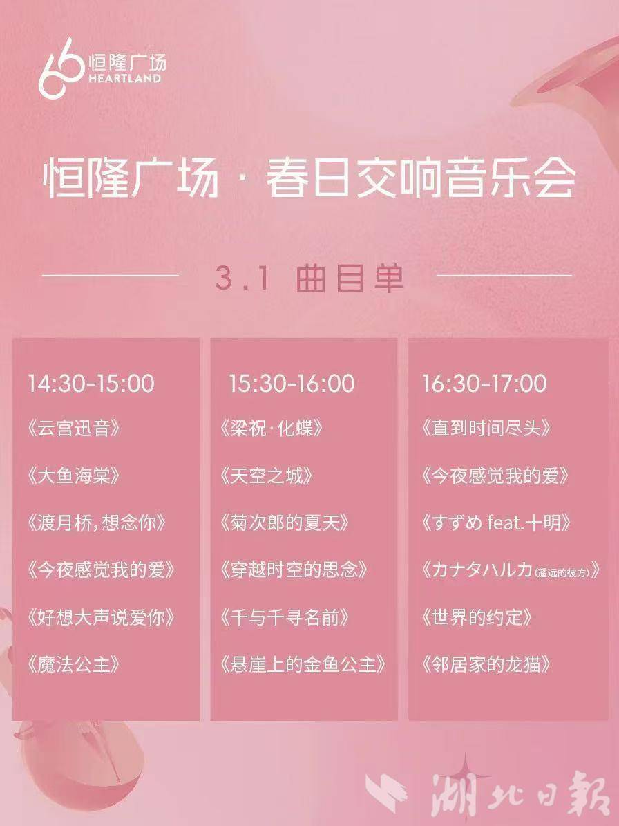 3月1日-2日,春日動漫金曲音樂會即將在武漢恒隆廣場舉行。本次音樂會由聆聽室內(nèi)樂團帶來,邀請武漢市民共賞“春日序曲”。