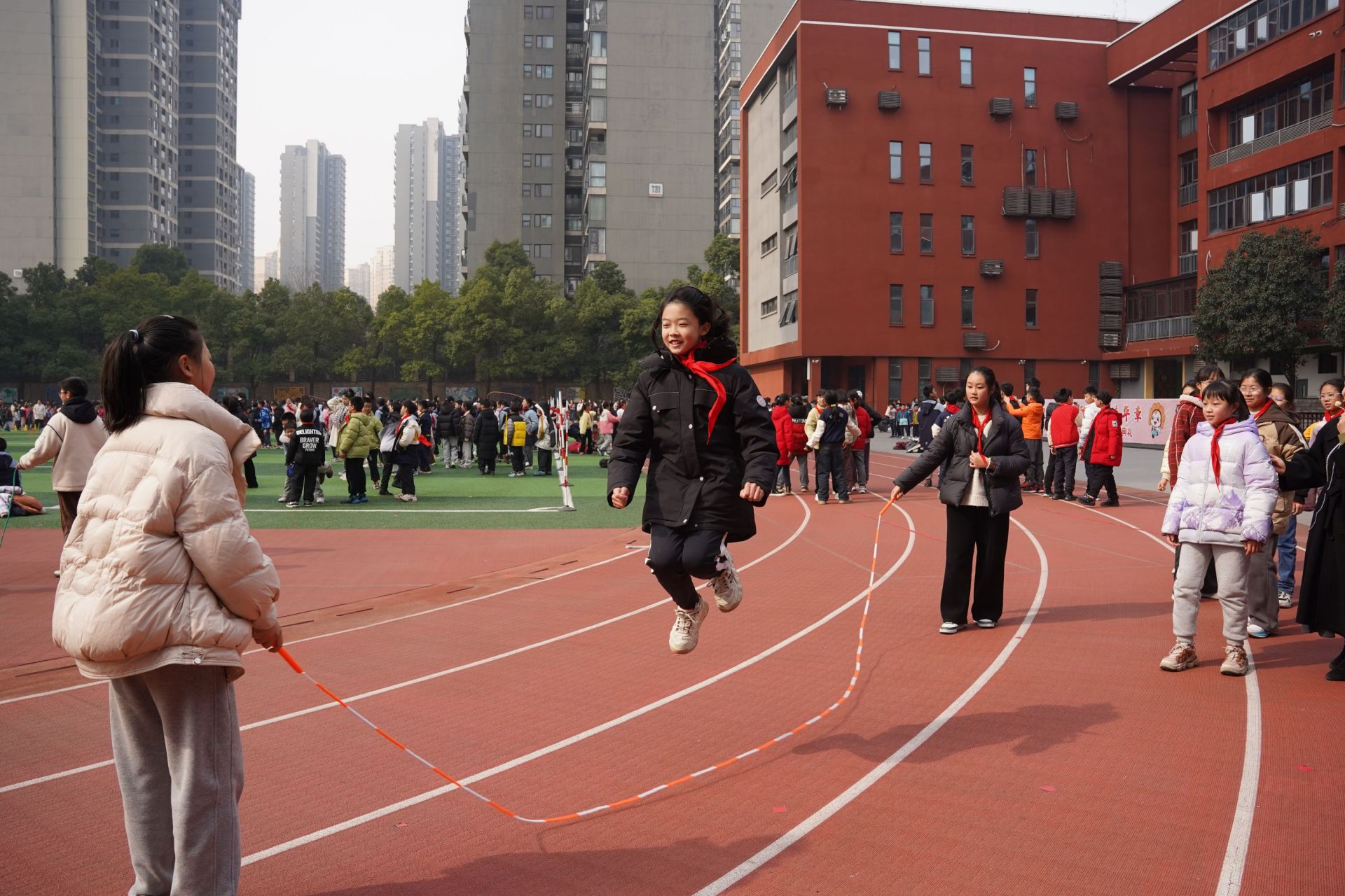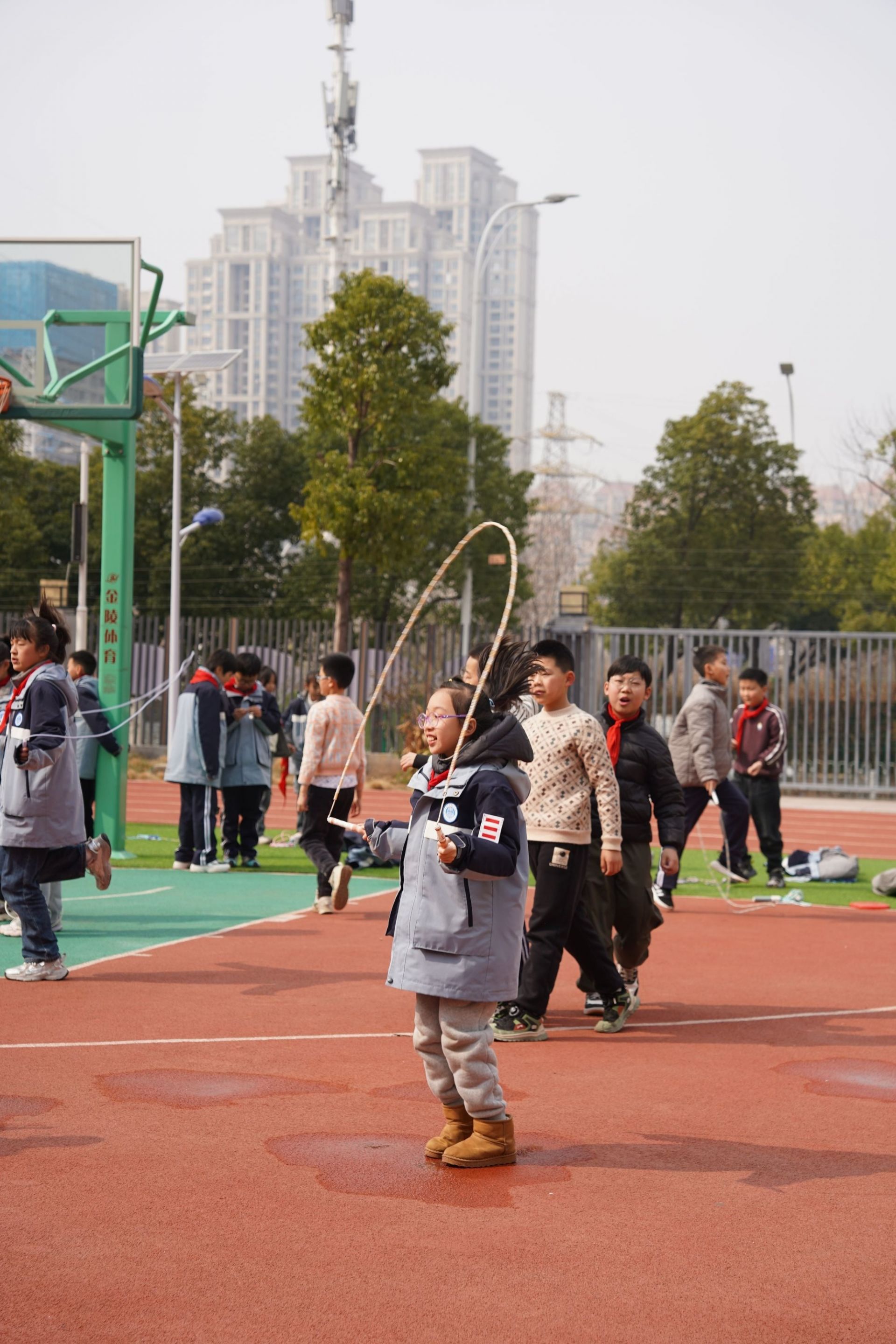 東湖實驗學(xué)校大課間,學(xué)生正在跳繩。張媛 攝